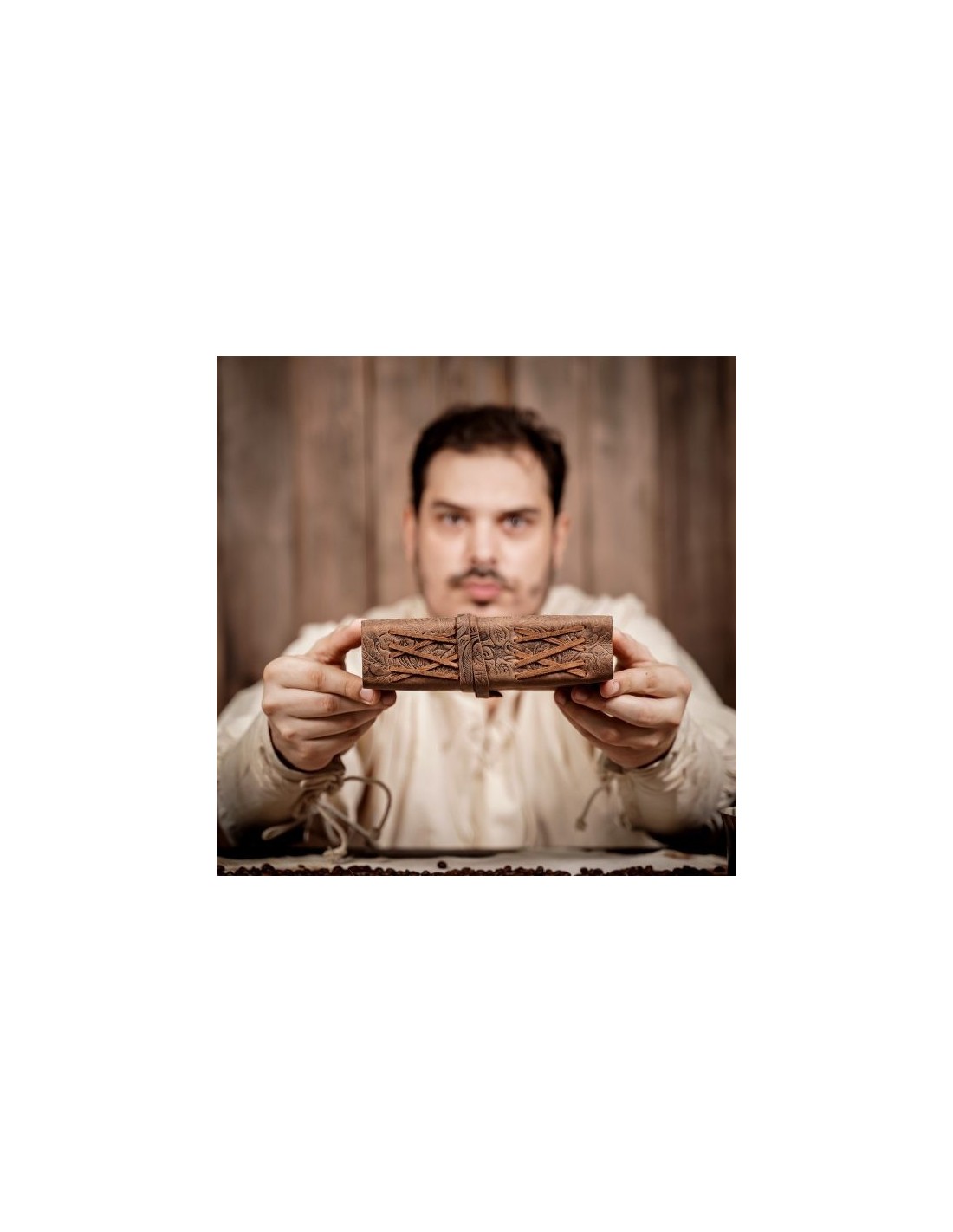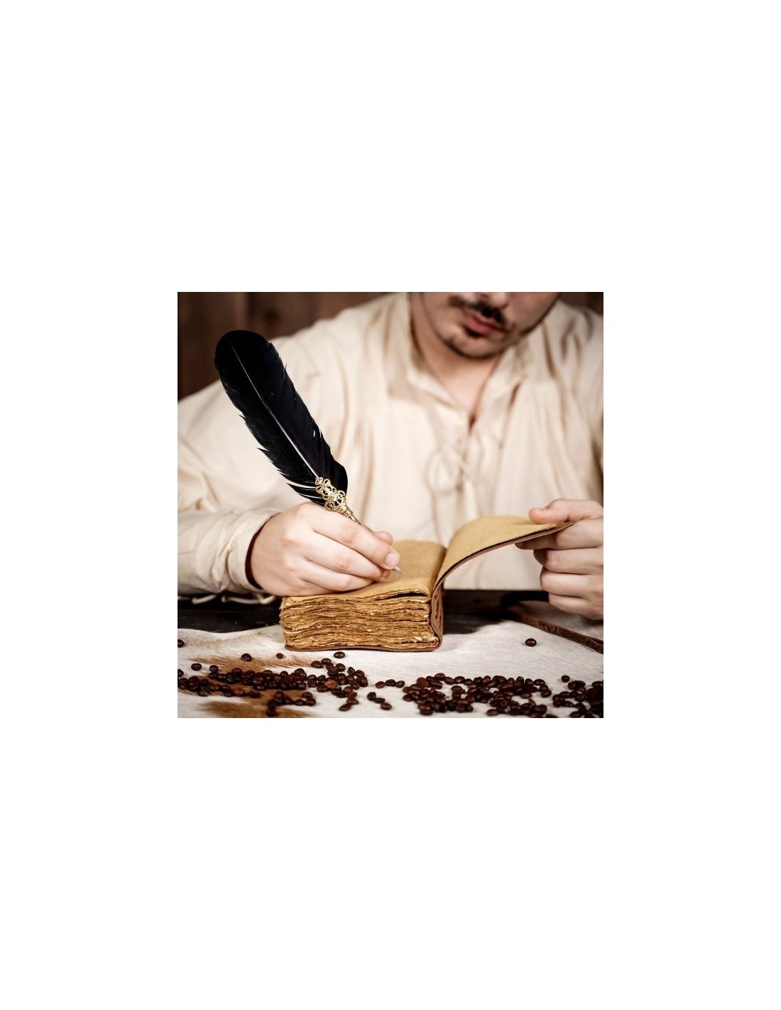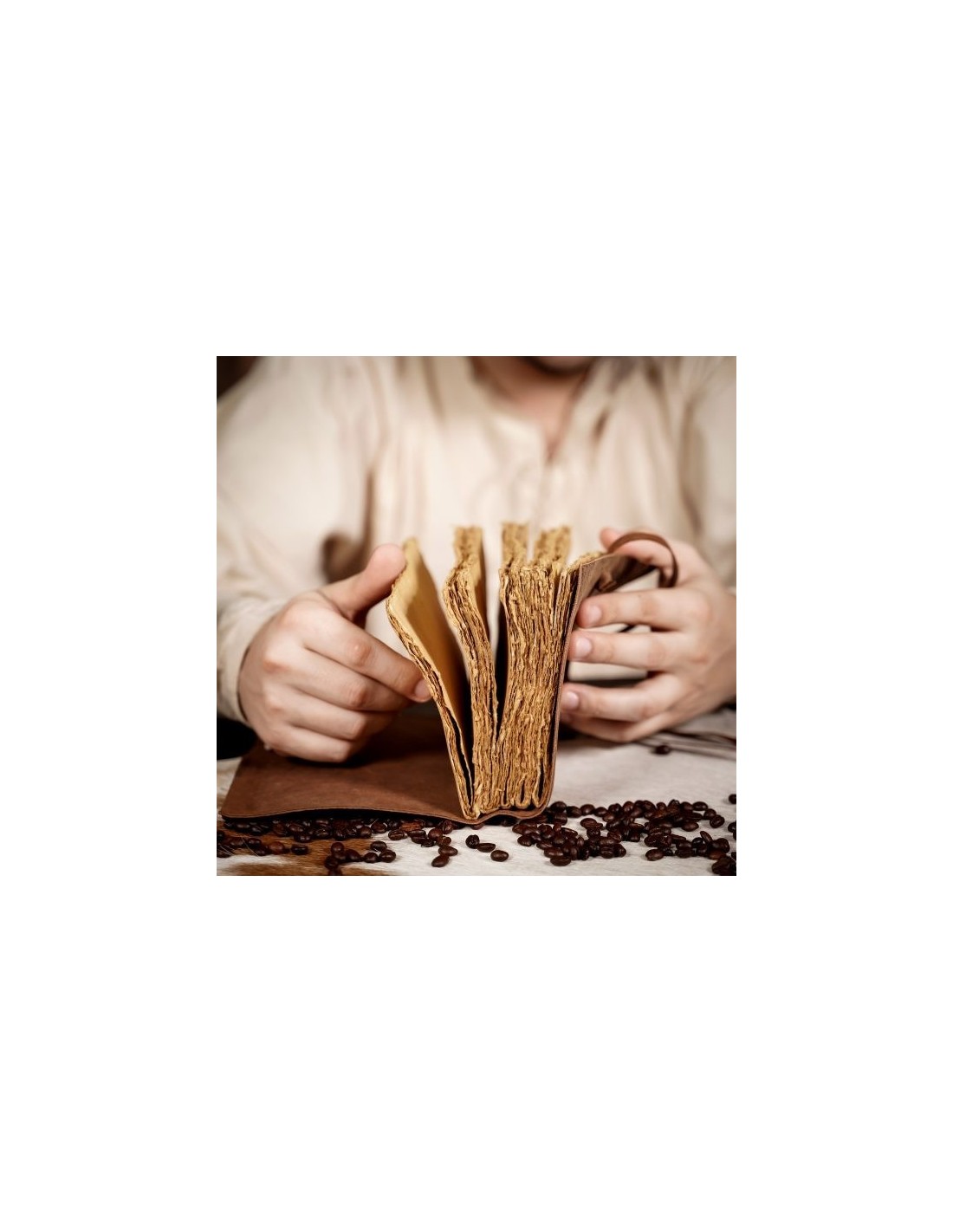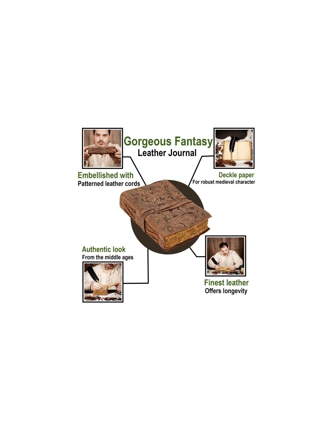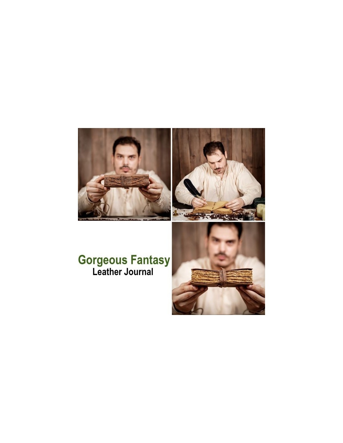 Este diário de couro (7 x 5) polegadas não só parece único, mas certamente é de todas as maneiras possíveis! Foi feito à mão com couro 100% REAL TOP GRAIN extremamente robusto. Seus 120 papéis antigos com bordas em deckle são fortemente encadernados usando um cordão de couro resistente.
