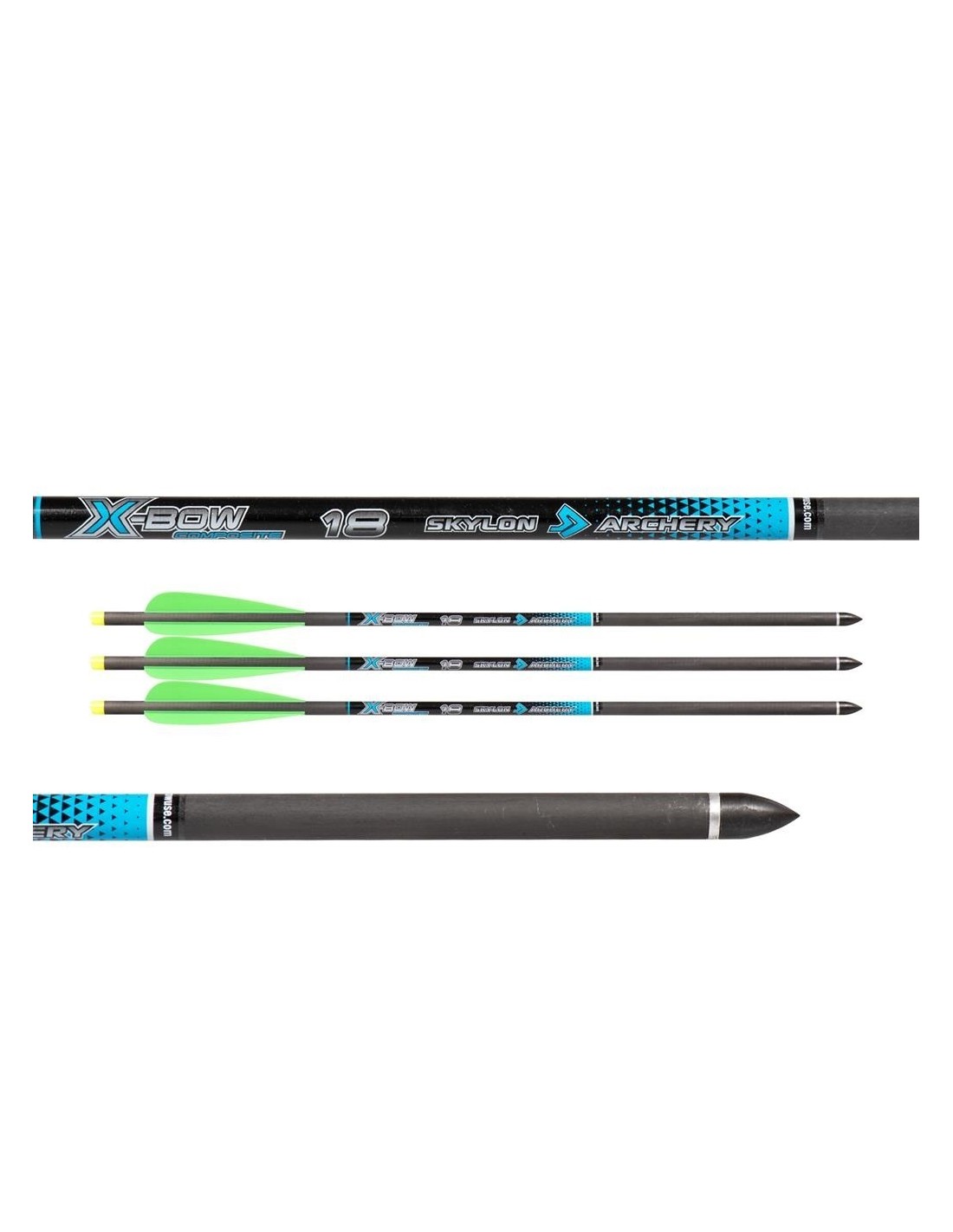 Caixa com 6 virotões para bestas, Skylon de 20" com ponta de treino. Pontas para caça ao javali ou outras espécies de caça maior podem ser colocadas (vendidas separadamente)