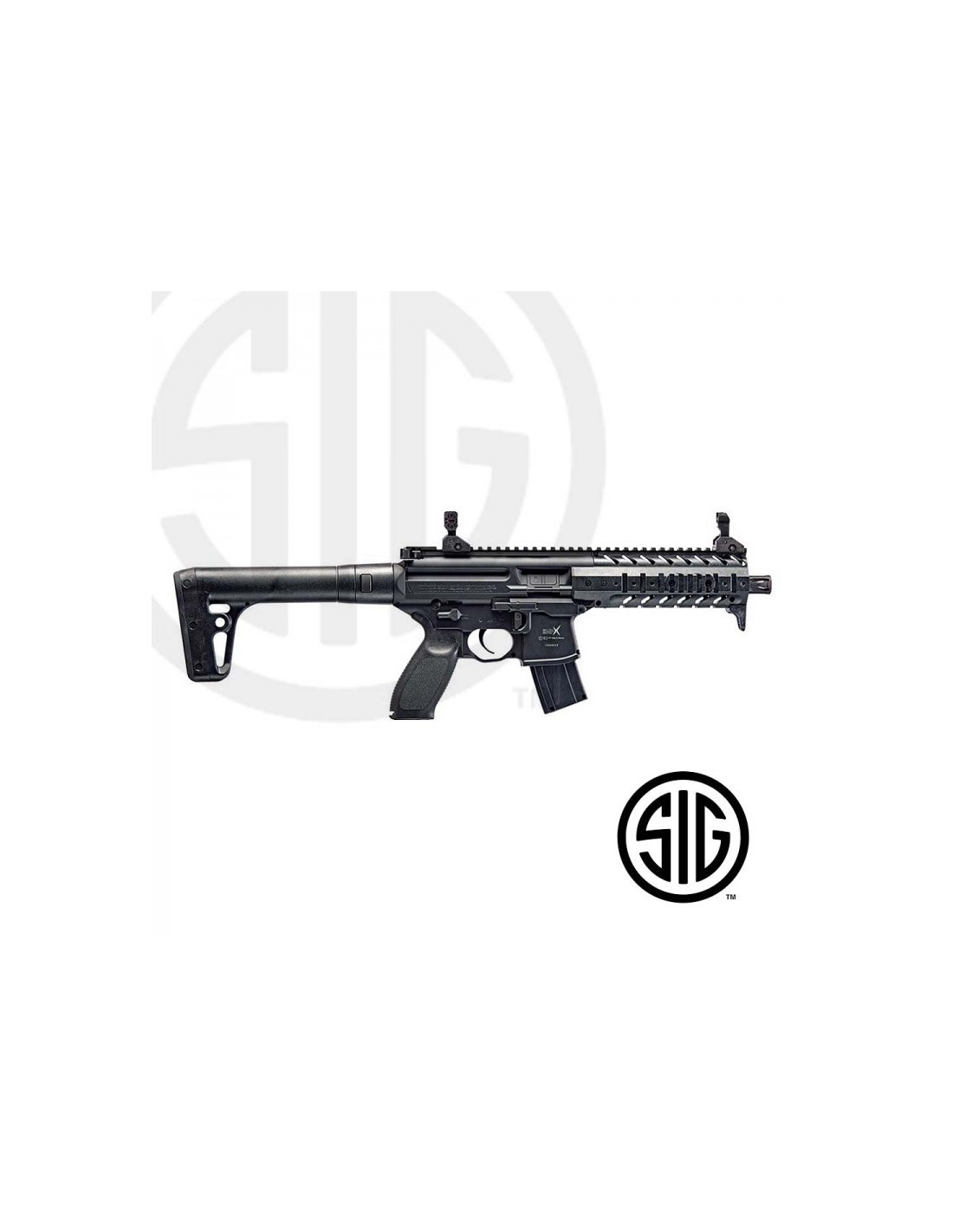 Sig Sauer metralhadora de chumbos, calibre 4,5 que funciona com uma botija de CO2 de 88gr. Uma réplica real, reconhecida pela famosa marca Sig Sauer é perfeita para os amantes do tiro de ar comprimido